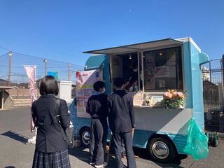 2月27日(月)・28日(火)の2日間、本校の昇降口前でわんわんクレープのキッチンカー販売を行いました。待ち時間もどれにするか相談し合う生徒の姿が楽しそうでした!テスト勉強の気分転換となる良い企画となりました。因みに、キッチンカーのオーナーさんは葵陵高校の卒業生です!