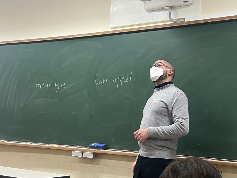 水戸葵陵高校では、火曜日の放課後にフランス講座を実施しております。本日の講座では、フランス菓子を試食し、フランスの食文化について学びました。また、フランス語のアルファベットの読み方を発音練習をおこないながら学習しました。