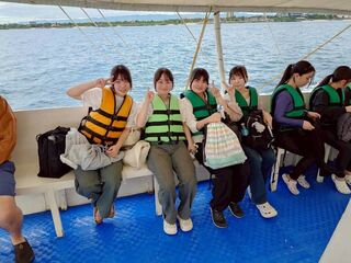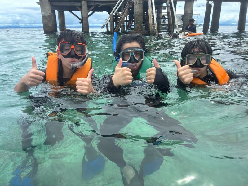 本日はアイランドホッピングツアーを行いました。ナルスアン島まで船で向かい、シュノーケリングを行いました。天気も良く透明度の高い海の中に入り、魚を見たり泳いだりしました。カヤックや現地の方々とバスケットボールをしたりと楽しく過ごせました。明日は現地の高校を訪れて学校交流を行う予定です。