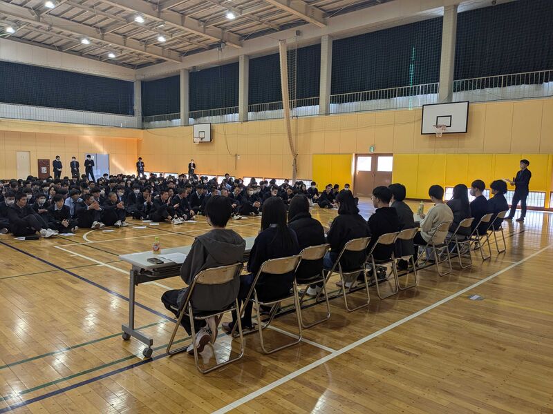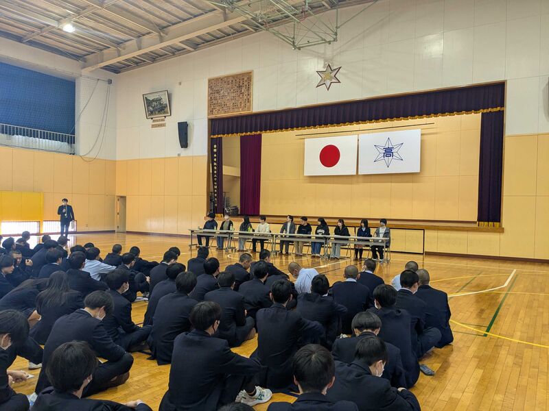 進学Vコースの全学年を対象に本校卒業生の先輩や現役の大学生から受験に向けた心構え、取り組むべきことなどを実体験をもとに具体的にアドバイスを頂きました。在校生はこれからの高校生活で何をどのように取り組めば良いのか考えるよい機会となりました。先輩たちを見習い、自己の進路の実現に向けて着実に前進していきましょう!