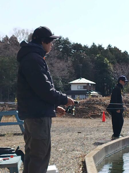 フィッシング愛好会では、毎年この時期に卒業記念釣り大会として管理釣り場でのトラウトフィッシング(ニジマス釣り)を行ってきましたが、今年は水戸市内の管理釣り場「turibori水戸南」で3/15(日)に開催しました。卒業記念大会にふさわしく、先日卒業したばかりの3年生がコンスタントにニジマスを釣り上げ、トータル9匹の釣果でした。1年生も初挑戦で苦戦しながらも、ノーフィッシュは回避し、全員釣りあげることできました。1年後には腕を上げてリベンジすることを期待します。それぞれに楽しい釣りをすることができましたが、やはりこの日も一番楽しんでいたのは顧問の先生で、20匹以上の釣果がありました。